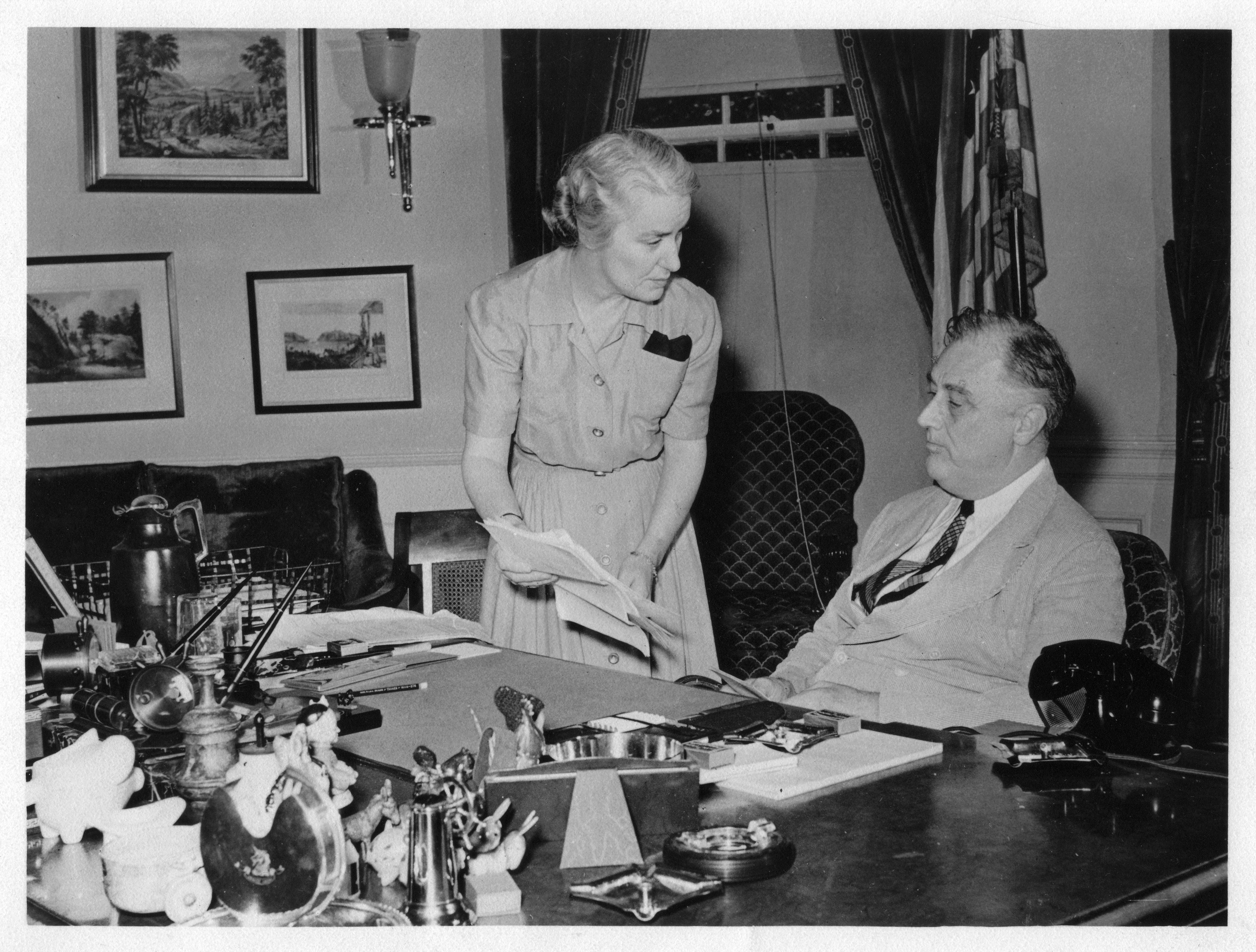 After a major White House renovation in 1934 Missy was moved into a prime office with a view of the rose garden, and a door that opened directly into the new and improved Oval Office. Hers was the ONLY office with such a door. Her office also had a door leading to the garden, allowing “unannounced” visitors direct access to FDR when he didn’t want their names showing up on the official White House registry.