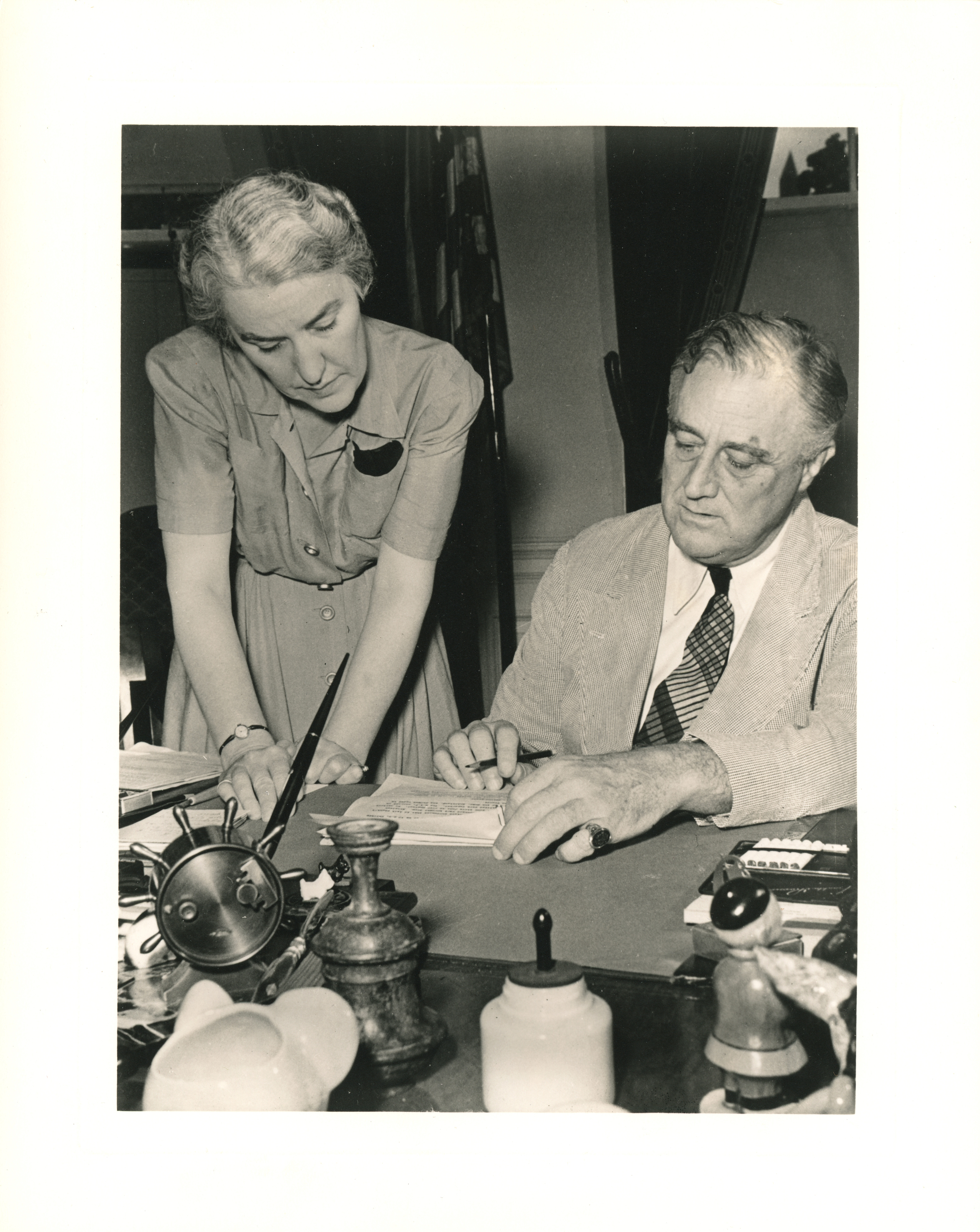 Throughout his life, Franklin Roosevelt was surrounded by remarkable women. His mother Sara Delano, his wife Eleanor, his Secretary of Labor Frances Perkins the first woman to be appointed to the cabinet, and his distant cousin Daisy Suckley. But the woman who is perhaps least remembered but most important was Marguerite “Missy” LeHand, his personal secretary and closest confidant for more than 20 years. Missy suffered a terrible stroke in 1941 and left the White House, so her assistant Grace Tully took over for her. When President Roosevelt died, Grace Tully took all of her and many of Missy’s papers with her. In 2010 when those papers finally came to the FDR Library they were known as the Grace Tully Collection, but most of them were really Missy’s papers.
