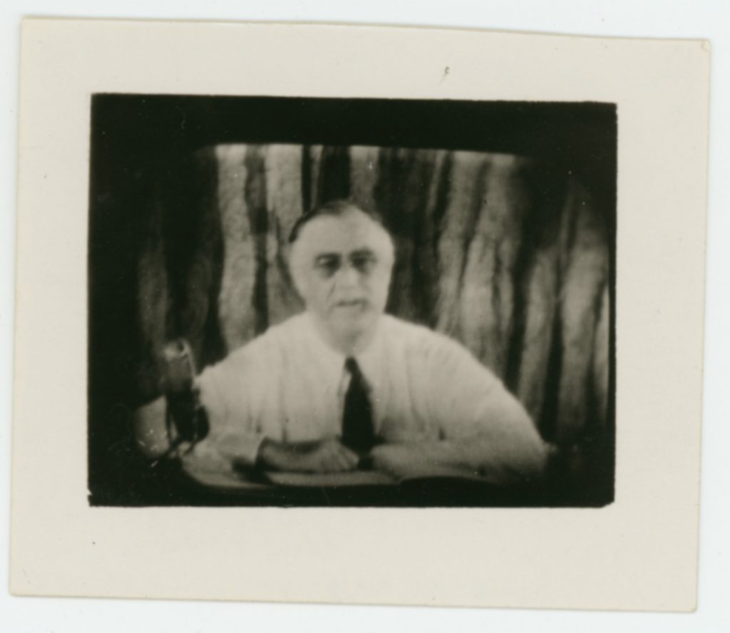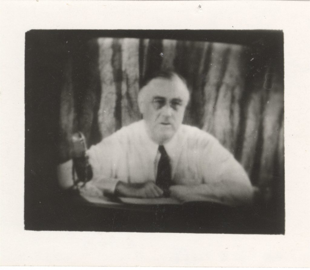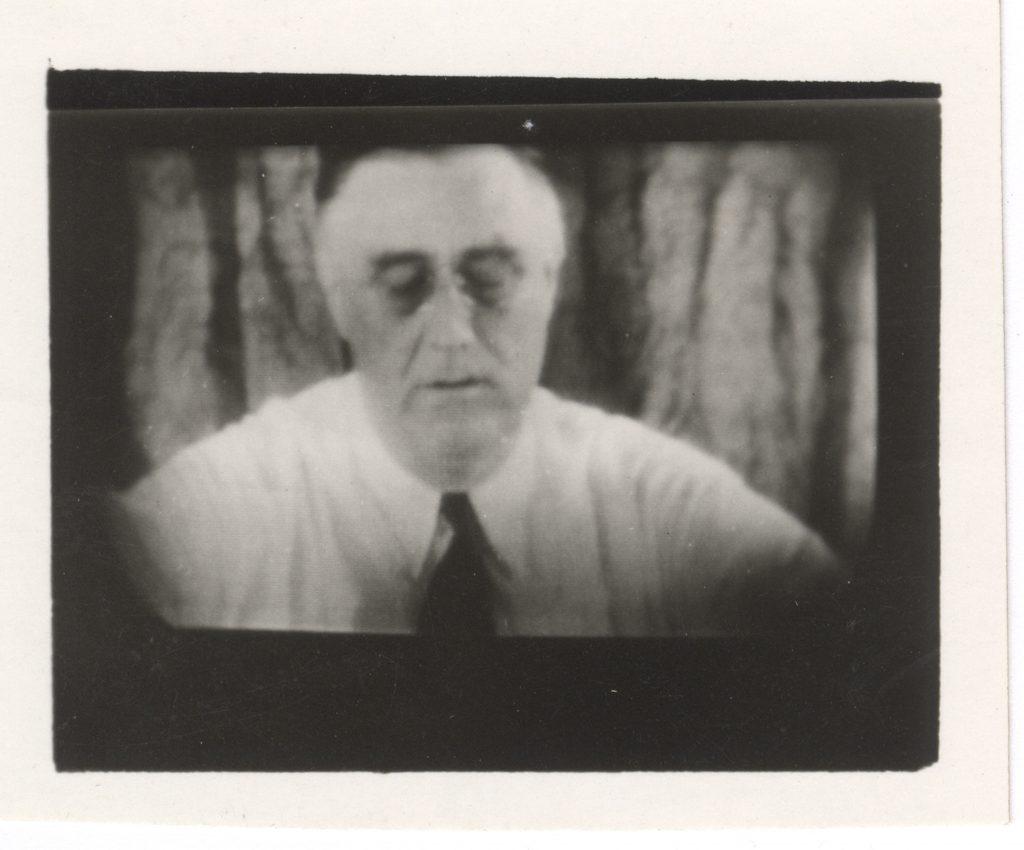 One intrepid viewer in New York City, Robert Eichberg, captured the moment in photographs that he sent to FDR a few days later after having them developed. The size of his TV screen is lost in these pictures, but most likely it was no more than seven to nine inches and probably looked similar to the President’s Springwood set. FDR would also appear on TV that fall in a campaign address at Madison Square Garden also carried by NBC.
