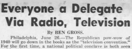 The 1940 conventions would also prove precedent setting for another reason—television. Broadcast TV was in its infancy in 1940, and commercially available sets had only been available since the previous year. Yet one national network, NBC, comprised of three stations, had grand broadcasting plans. Philadelphia would host the Republicans, and NBC had a coaxial cable connection there from New York City, enabling almost gavel-to-gavel coverage.